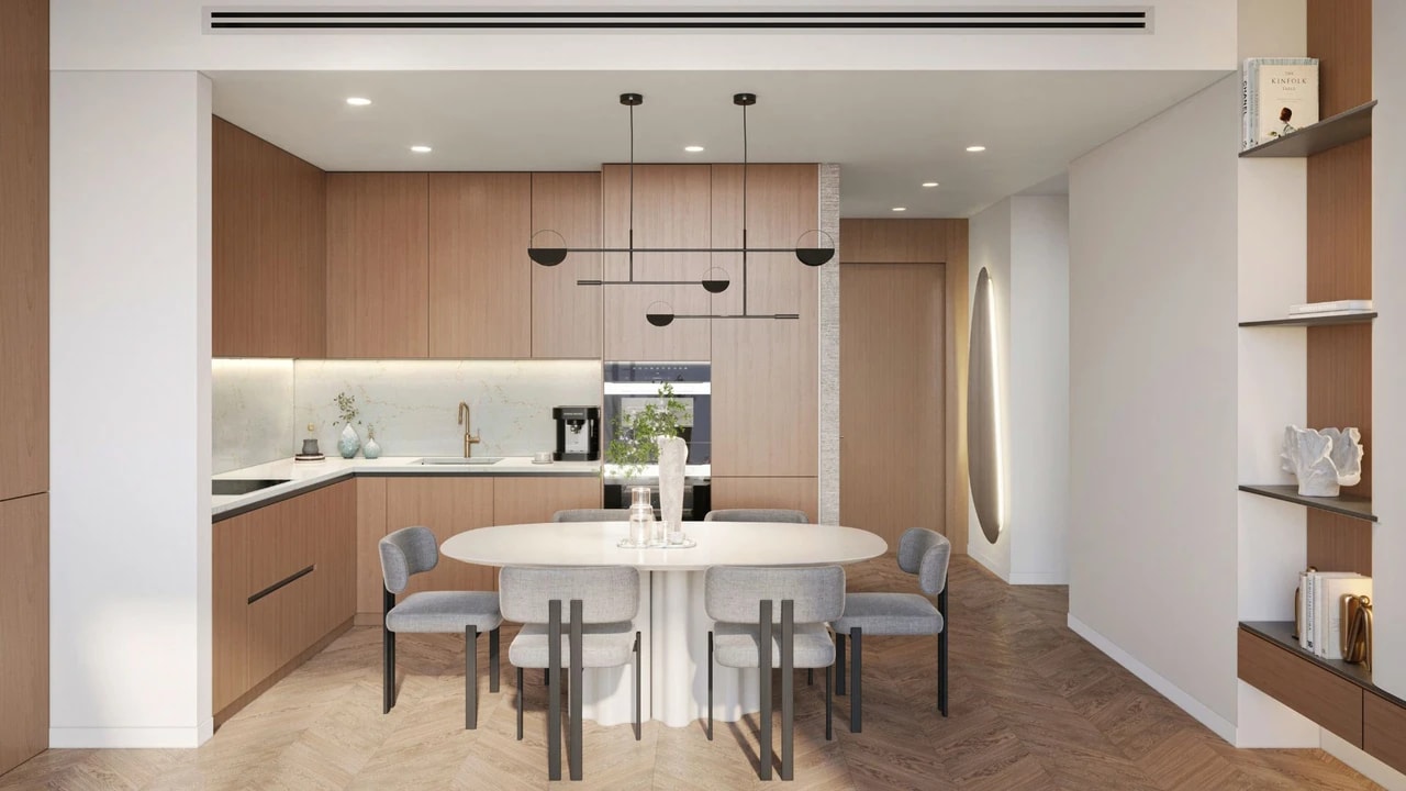 Living here is more than owning a home — it’s a resort‑style experience with over 50 signature amenities on site. Residents enjoy multiple swimming pools including rooftop infinity and saltwater pools, dedicated kids’ and adult pools, a fully equipped gym, Pilates and yoga studios, wellness spa, and outdoor fitness areas. The project also features an outdoor cinema, children and teens clubs, co‑working spaces, retail, sky lounges, private beach facilities, and dining venues that foster a vibrant community atmosphere.